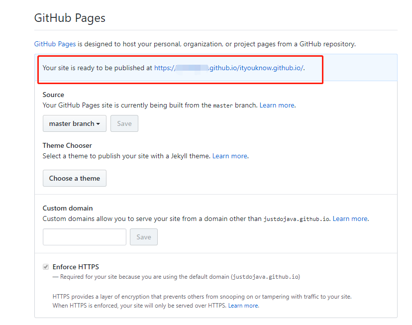 5、重命名之后,再次回到 Settings > GitHub Pages 页面